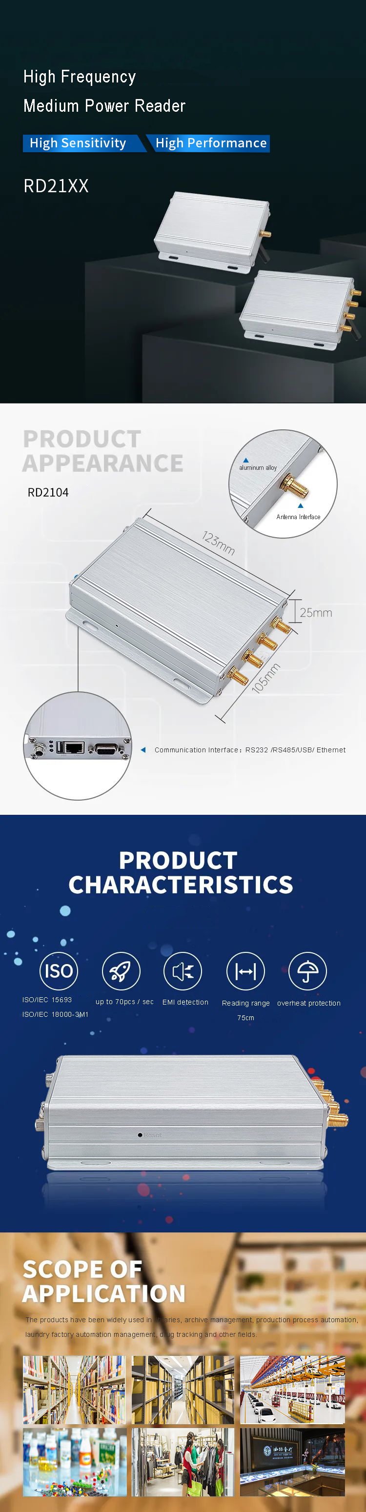 Reading and writing range: single antenna can reach 75cm (antenna size: 560*650mm); (this distance is related to card performance and antenna size).